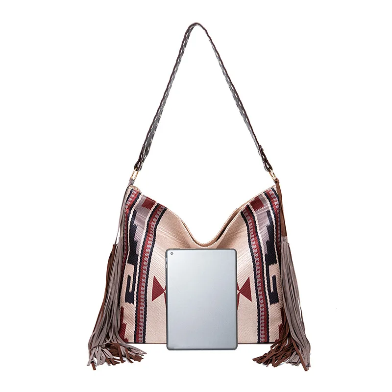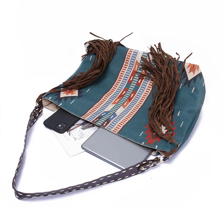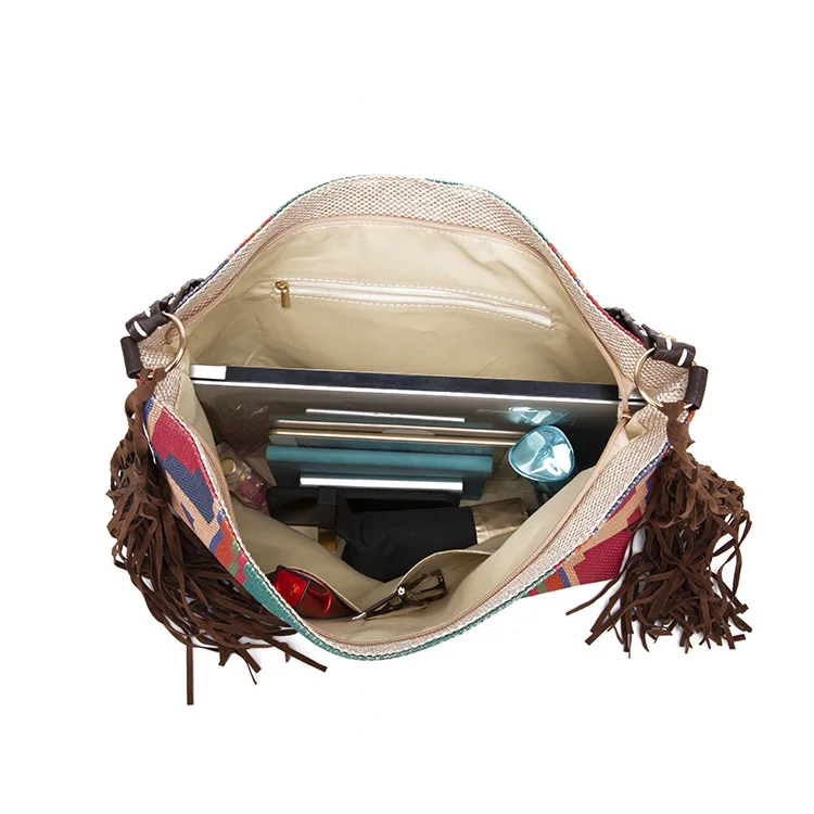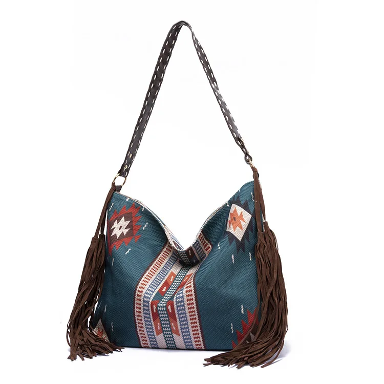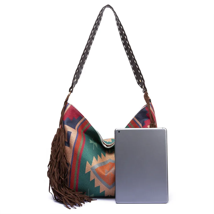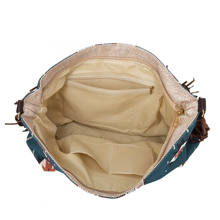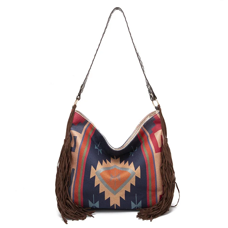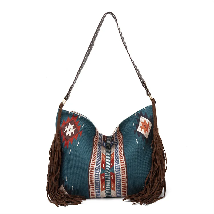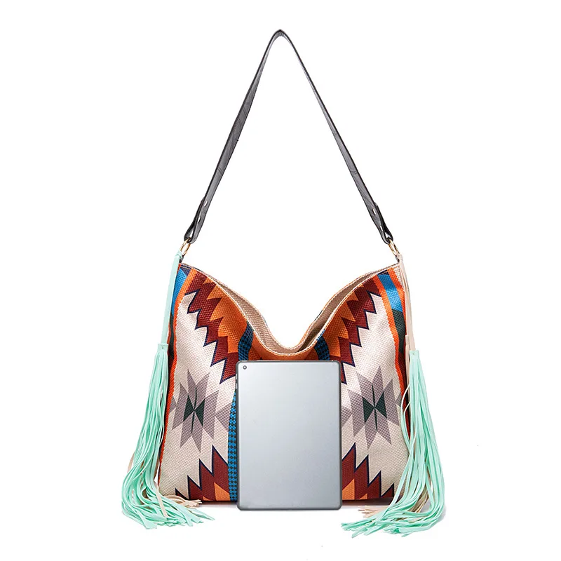 Bohemian Large Capacity Tote Bag Vintage Canvas Women Shoulder BagsTassel Geometric Patterns Crossbody Bag Big Shopper Purses