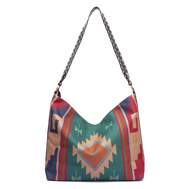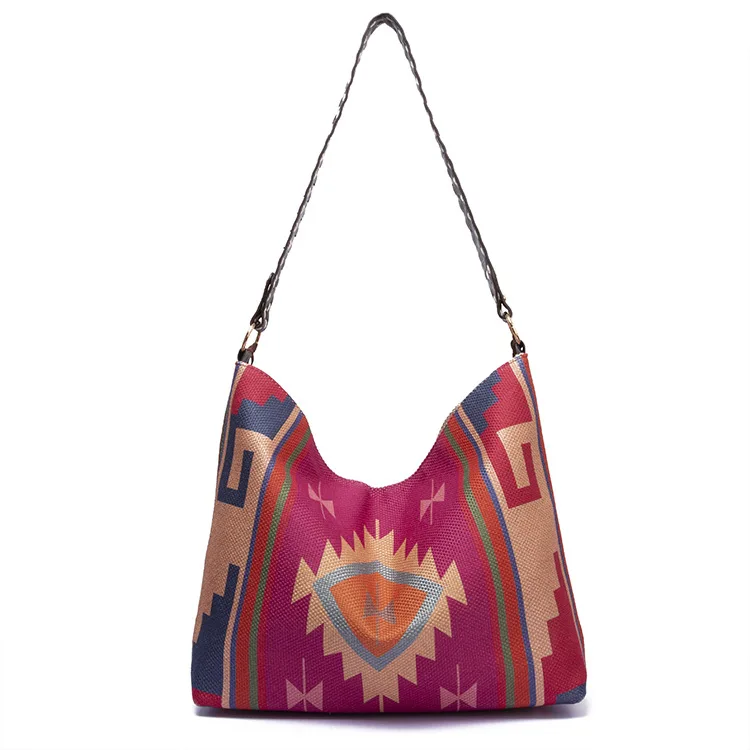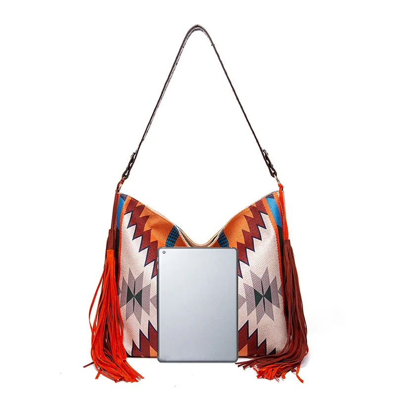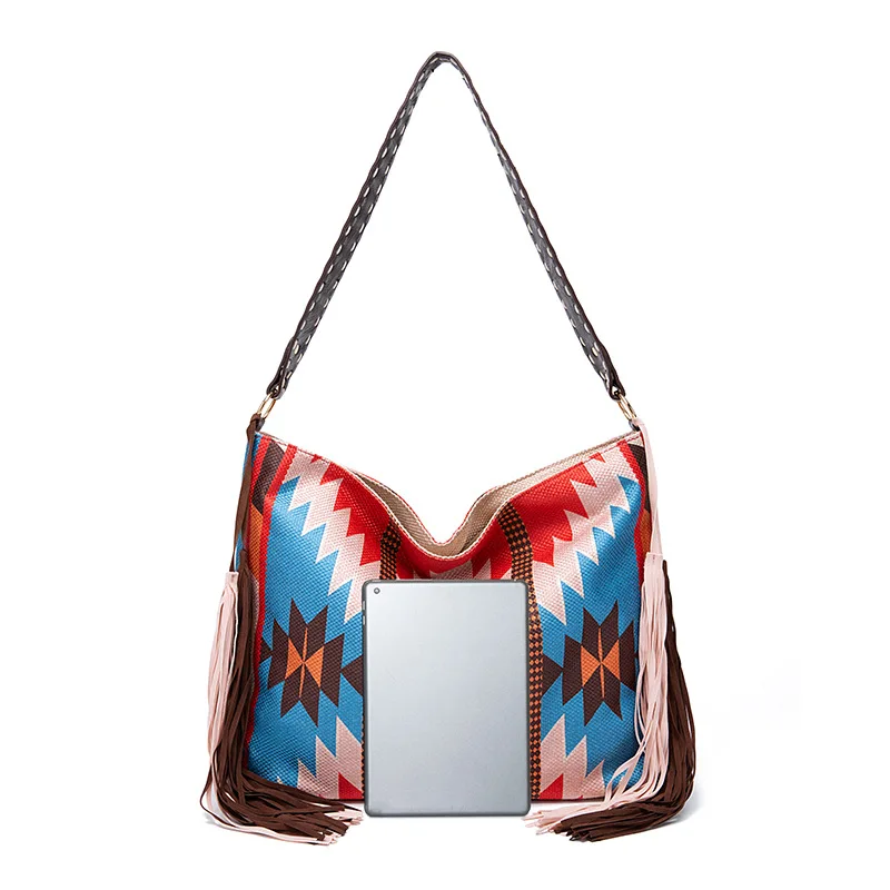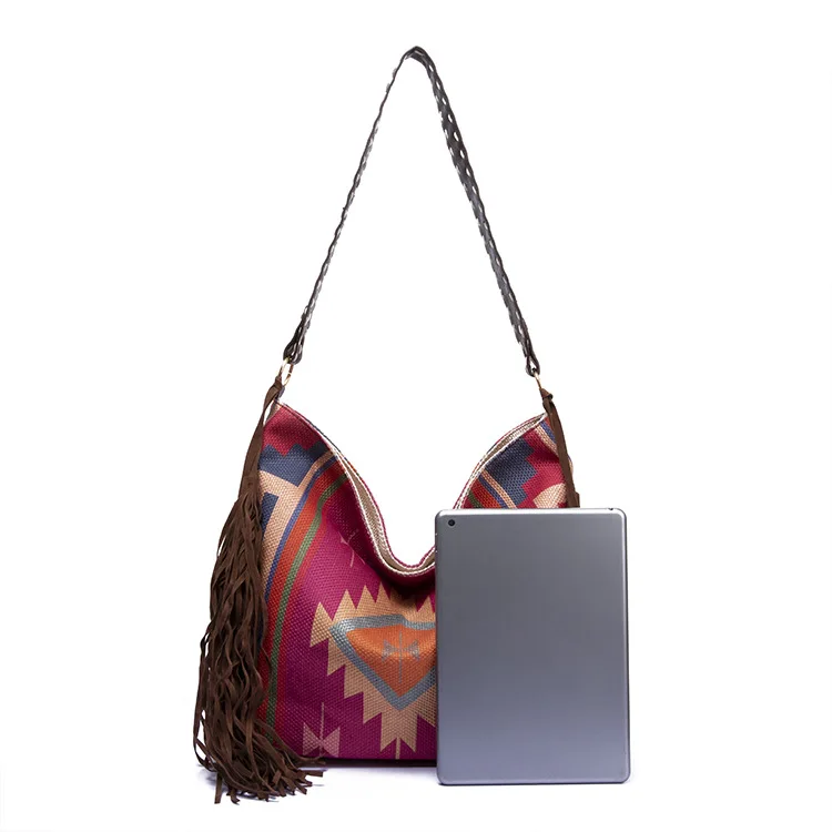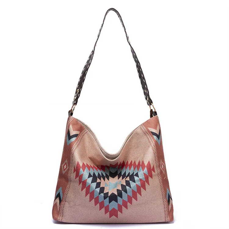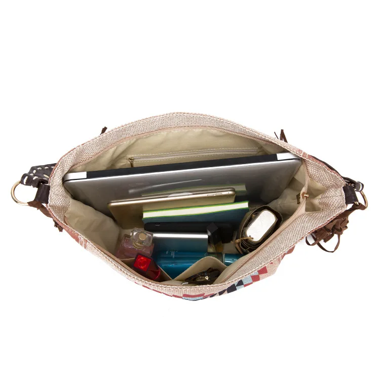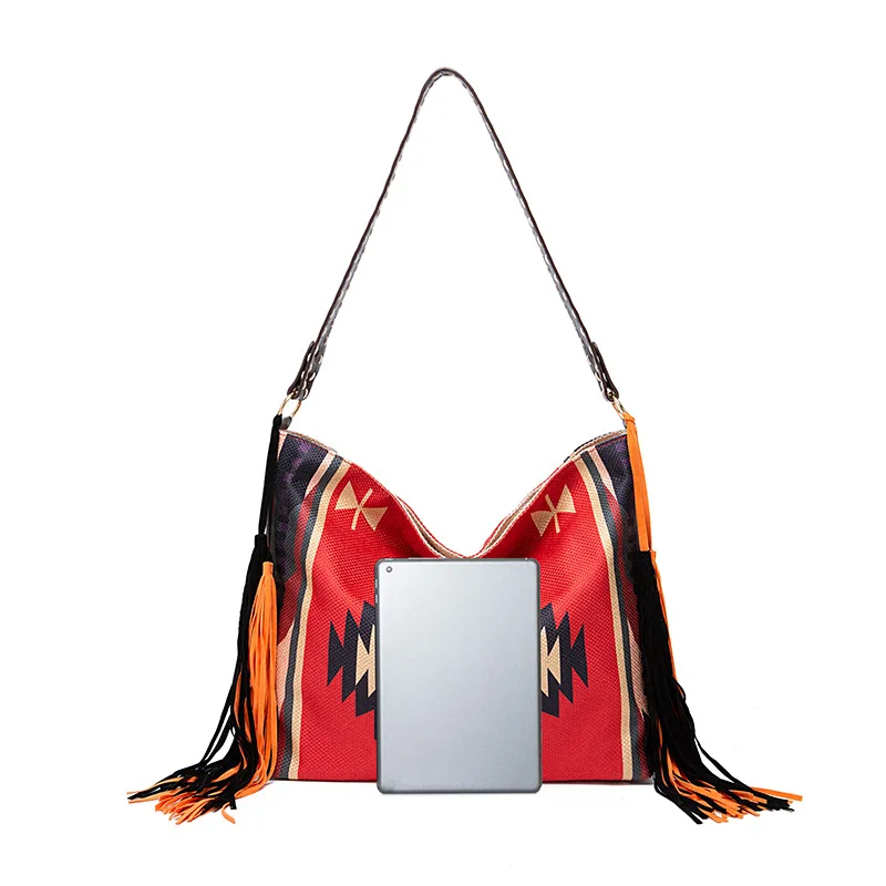 Bohemian Large Capacity Tote Bag Vintage Canvas Women Shoulder BagsTassel Geometric Patterns Crossbody Bag Big Shopper Purses