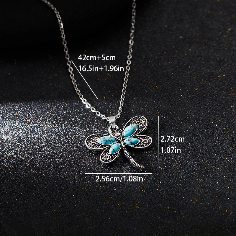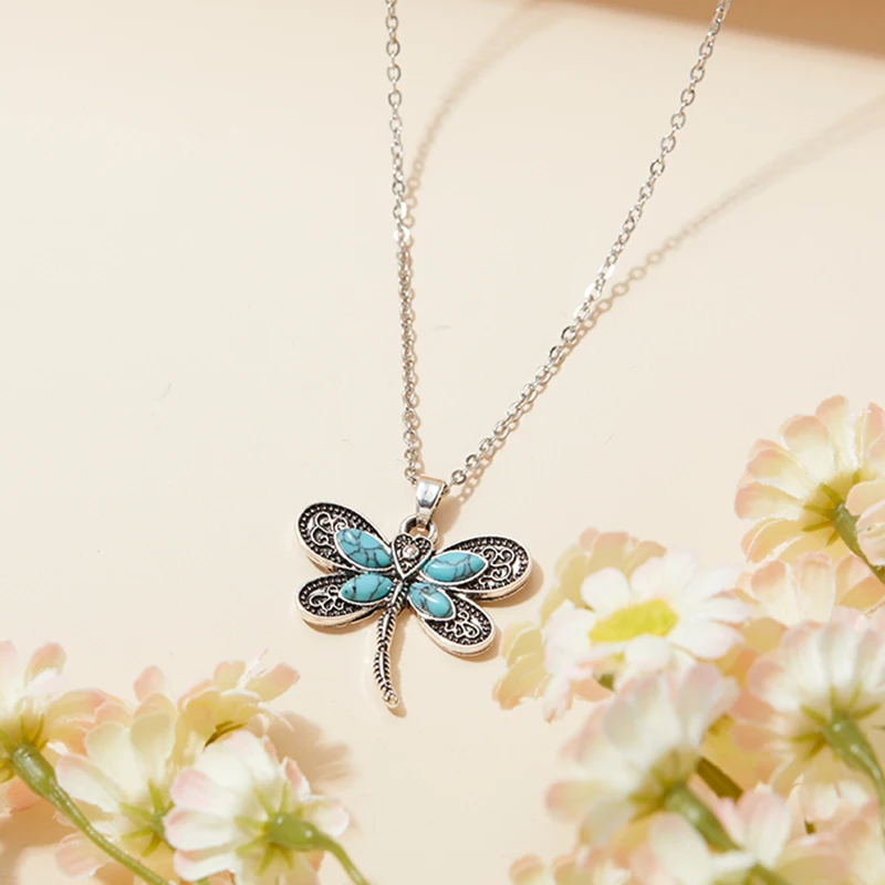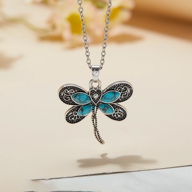 Cute Fashionable Bohemian Style Dragonfly Inlaid Imitation Blue Gemstone Shape Pendant Necklace Women's Party Jewelry Gift
