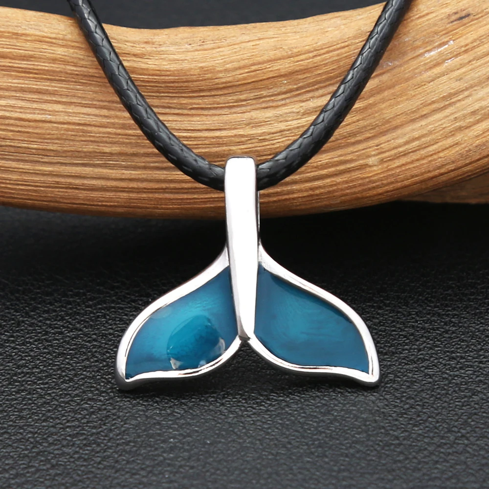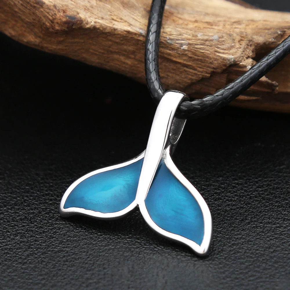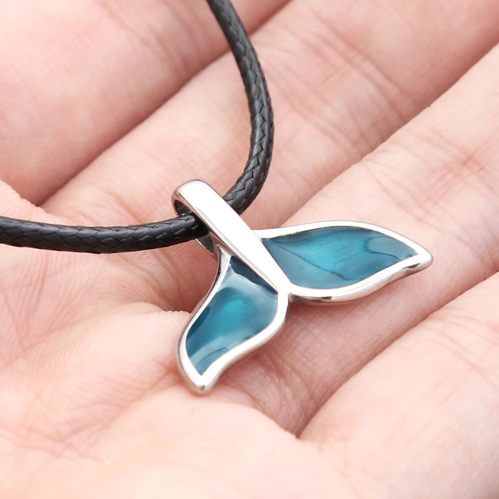 Fashion Blue Whale Fish Tail Pendant Necklaces For Men Women Stainless Steel Fashion Accessory Animal Theme Jewelry Party Gifts